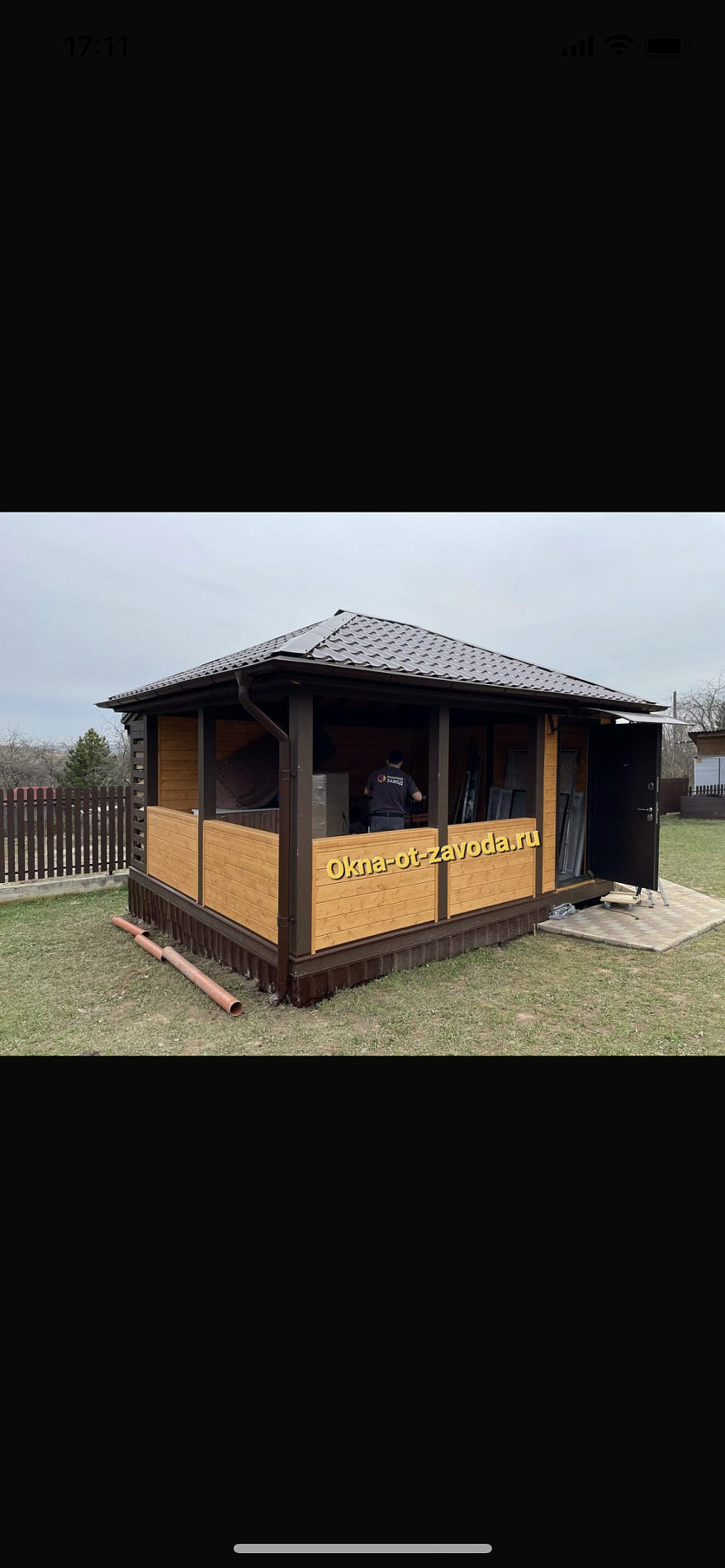 Очень хочется оставить отзыв о данной компании, выразить благодарность каждому сотруднику, кто принимал участие от менеджера до команды по сборке, особенно Константину. Каждый сделал свое дело на отлично. Беседка 4*5 закрытого типа на сваях была выполнена по индивидуальному проекту, с дровником по задней стенке, застекленная, с ливневкой и снегозадержателем и металлической дверью. Кровля покрыта металлочерепицей. Все условия Договора были соблюдены. Коллектив очень пунктуален, добросовестен и вежлив. Спасибо от всей души. Никаких проблем. Если мой отзыв поможет кому-то определиться с выбором застройщика-буду очень рада. Не сомневайтесь. Фото прикрепляю