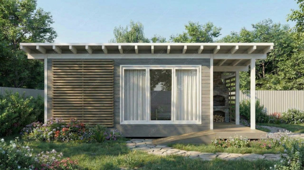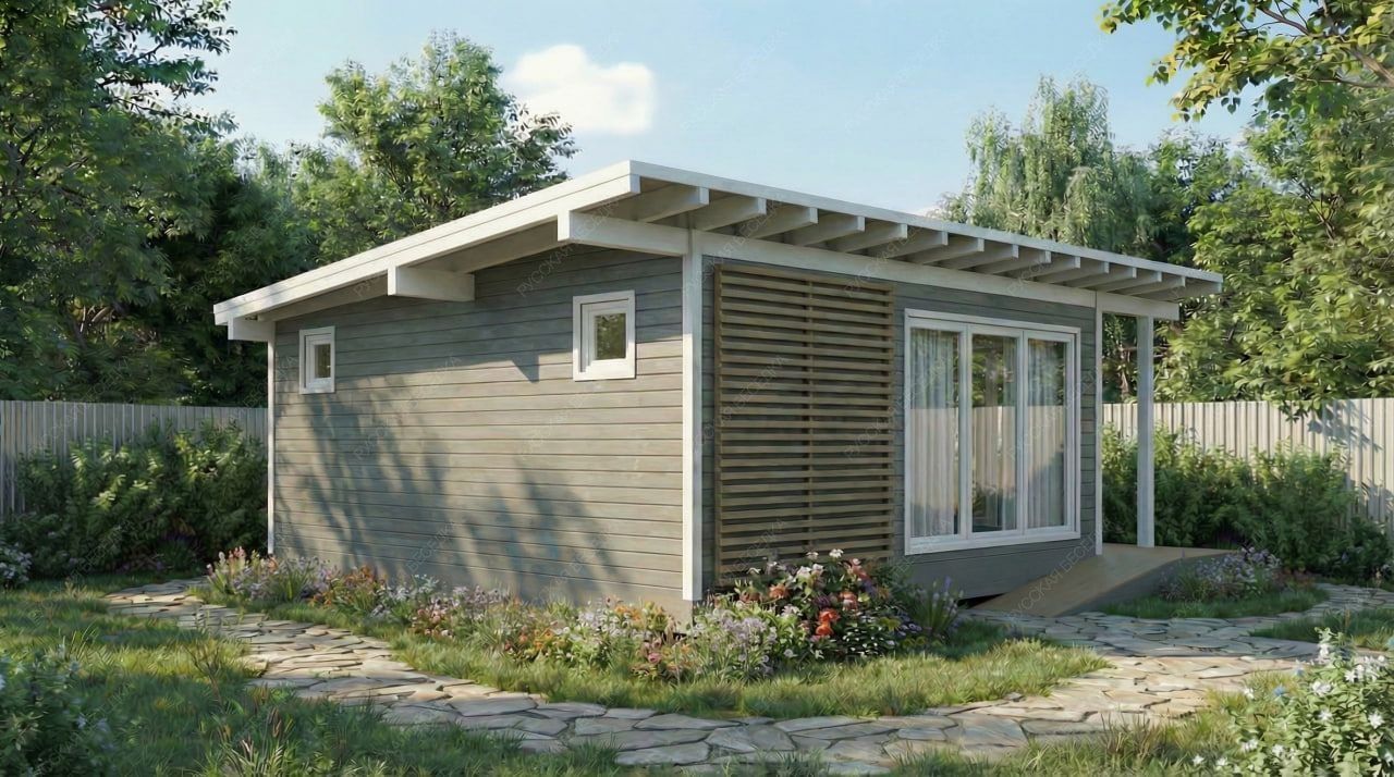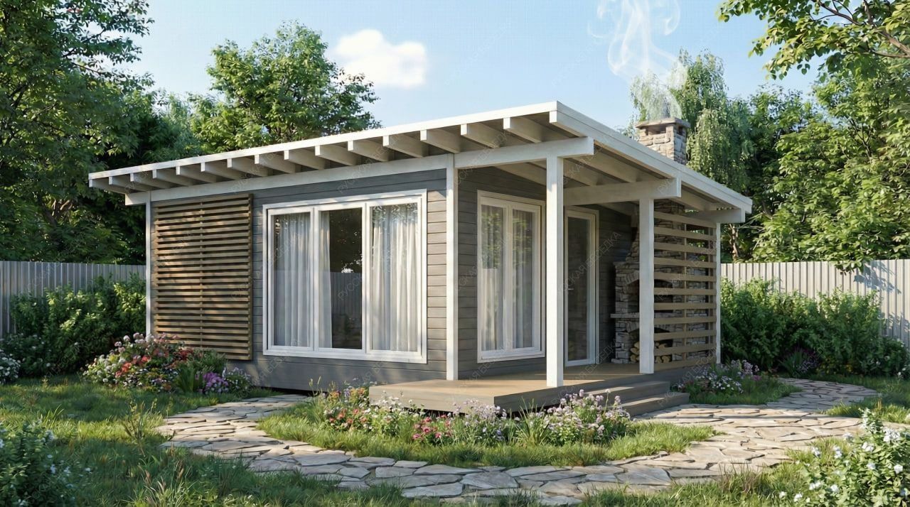 Каркасная баня «Керила» с односкатной крышей и габаритами 5х8 метров предлагает продуманную Г-образную планировку общей площадью 40 кв.м. Такая конфигурация эффективно разделяет пространство на функциональную и релаксационную зоны. Технологичная часть включает парную 5.24 кв.м., душевую и санузел, каждая площадью 2.46 кв.м., что обеспечивает комфортное последовательное прохождение всех этапов банного ритуала. Основной акцент смещен на просторную комнату отдыха площадью 17.65 кв.м., которая напрямую связана с открытой террасой 8.42 кв.м. Подобная интеграция формирует единое светлое пространство для приема гостей, плавно перетекающее в зону отдыха на свежем воздухе. Каркасная конструкция гарантирует оперативный монтаж и высокую энергоэффективность. Односкатная крыша подчеркивает современный лаконичный дизайн. Проект представляет собой сбалансированный вариант для тех, кто ценит четкое зонирование, возможность совместить процедуры с гостеприимством и современный архитектурный подход.