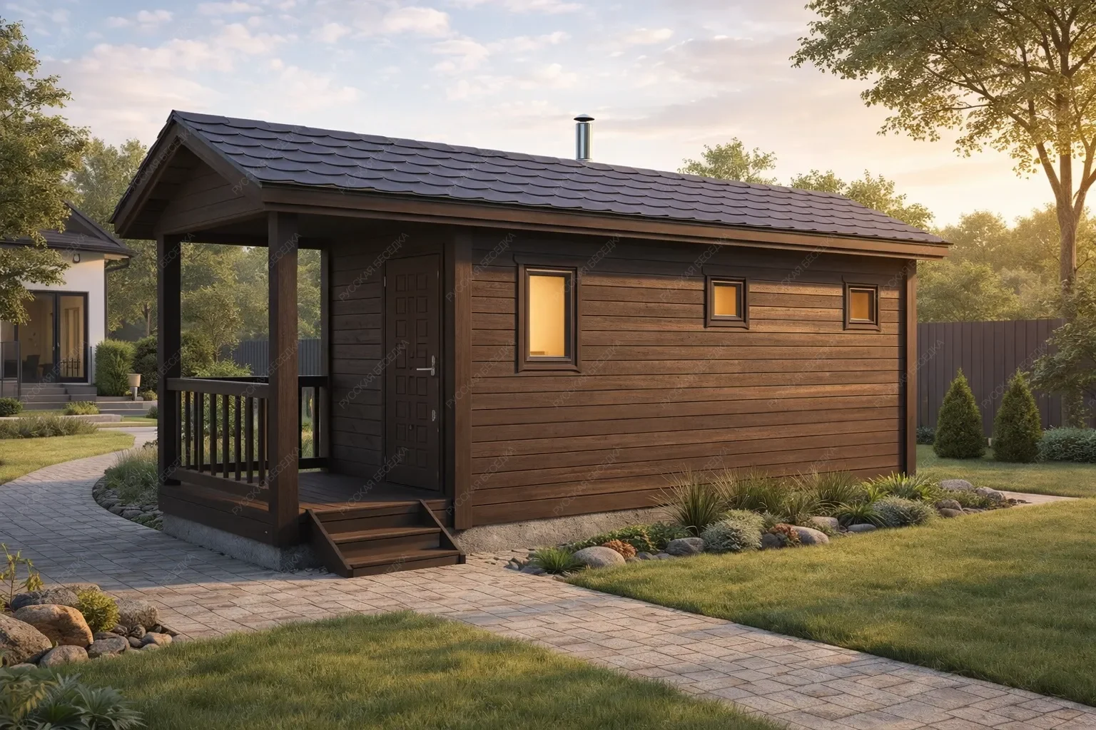 Мобильная баня «Полли» с двухскатной крышей демонстрирует эффективную организацию вытянутого пространства площадью 18,4 кв.м. при габаритах 8,0×2,3 метра. Её линейная планировка максимально рациональна: три последовательных помещения — парная, душевая и раздевалка — образуют четкий функциональный маршрут, соответствующий традиционному банному ритуалу от прогрева к отдыху. Увеличенная длина модели, по сравнению с более компактными вариантами, позволила создать более просторные зоны в каждом из помещений, повышая общий комфорт. Стандартное остекление обеспечивает достаточный уровень естественного освещения, сохраняя классический внешний облик и надежные теплоизоляционные характеристики. Двухскатная крыша придает конструкции устойчивый, завершенный вид и способствует эффективному водоотведению. Ключевым преимуществом остается полная мобильность, позволяющая осуществить быструю установку объекта на подготовленной площадке без капитального фундамента. Данная модель представляет собой оптимальный баланс между компактностью, полноценным набором функций и повышенным внутренним комфортом, предназначенный для владельцев участков, которые ищут готовое, автономное и быстро развертываемое решение для регулярного использования.