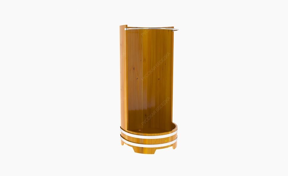 Душевая кабина с держателем для шторки d=0,9 h=2,0 Изготовлена из лиственницы. Поверхность душевой кабины обработана специальным, особым защитным покрытием из полиуретана – придающий поверхности кабины– водостойкость – износостойкость, обладающим эластичностью. На ощупь – поверхность имеет приятную гладкую текстуру. Такая защита является абсолютно экологически безопасной что подтверждено государственным гигиеническим сертификатом. В случае, когда душевую кабину нужно установить на открытом воздухе – поверхность обрабатывается специальным покрытием с защитой от ультрафиолетовых лучей – при этом стоимость кабины увеличивается на 5% В некоторых случаях, например - когда габариты душевой кабины превышают размеры дверных проемов в помещениях, доставка душевой кабины осуществляется в разобранном виде –  сборка осуществляется на месте - стоимость сборки душевой кабины - уточняйте у менеджеров.