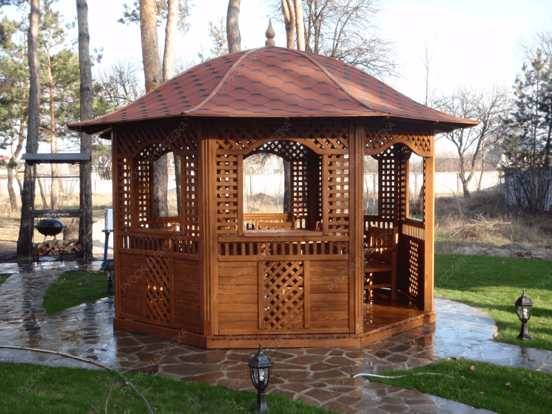 Беседка выполненная из лучших пород древесины, прослужит долгие годы и не потребует особого ухода и обслуживания. Специальные лакокрасочные материалы которые мы используем, предотвратят старение, гниение и заражение грибком конструкции кухни. Используемая огнебиозащита образует полупрозрачное полуматовое покрытие, стойкое к влаге, УФ-излучению, перепадам температуры и другим атмосферным воздействиям.