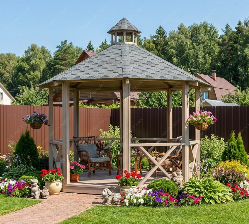 Современный ландшафтный дизайн и беседки - центральные элементы загородного участка. Беседка должна размещаться в таком месте участка, где вам будет комфортно находиться, а также она должна отвечать своему назначению и притягивать взгляды. Беседка является уникальным строением, с ее помощью можно отдохнуть за чашечкой кофе, укрыться от знойного солнца или провести шумный праздник в кругу семьи и друзей.