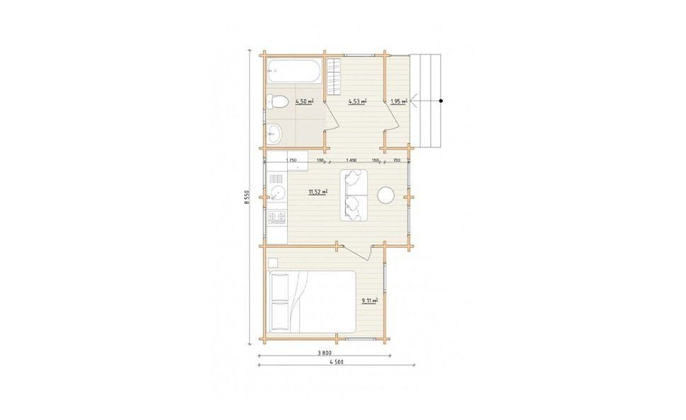 • Внешние размеры: 8,6x4,5x 3,51 м