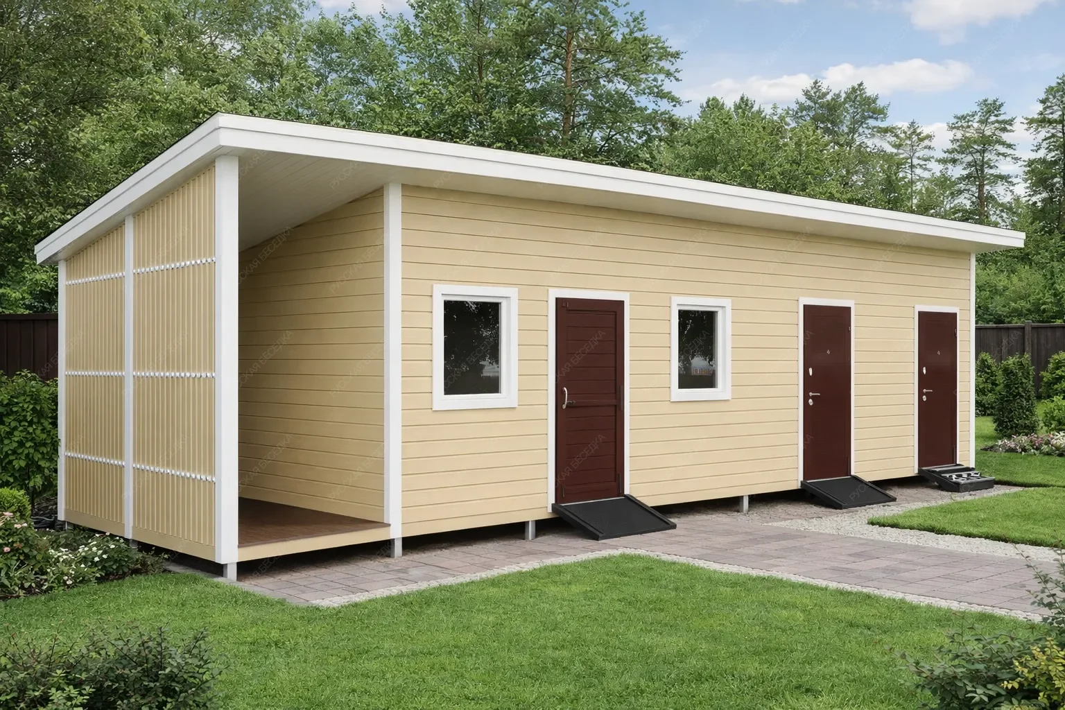 Проживание бригады, в период строительства, обеспечивается силами нашей Компании (Подрядчика) и включено в стоимость.