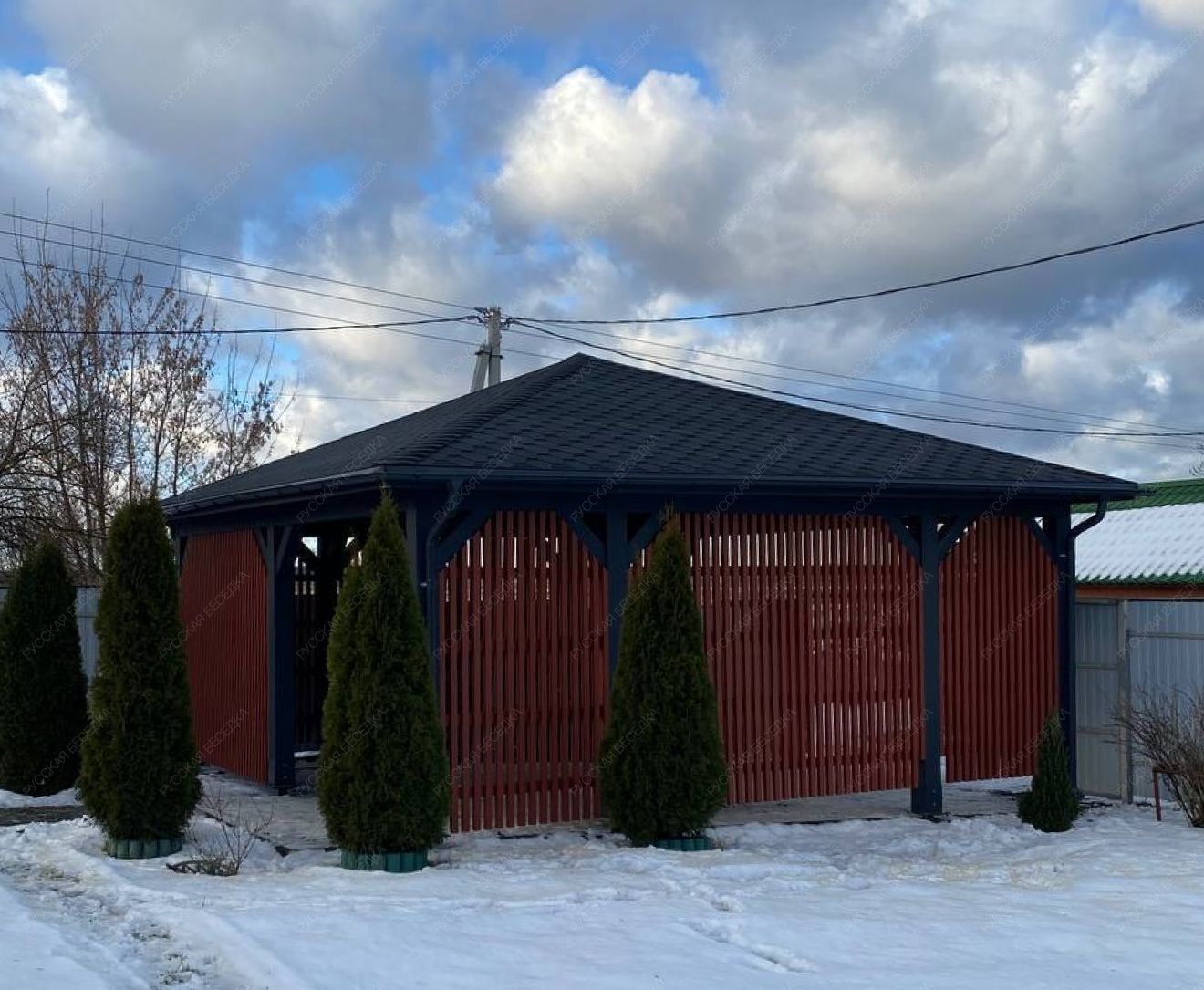 Навес из дерева послужит отличным парковочным местом для одного или нескольких автомобилей.