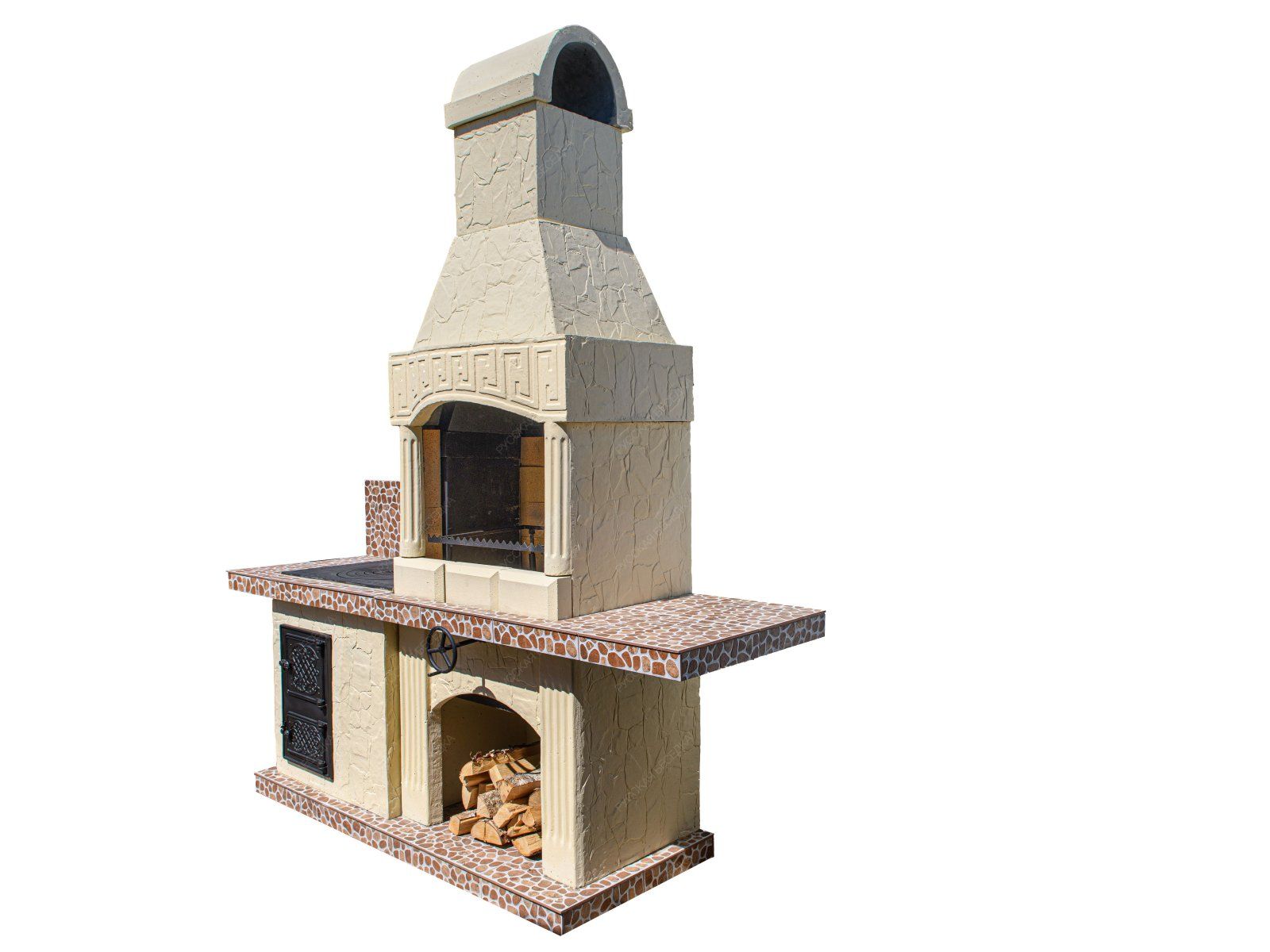 Печь-барбекю для улицы либо беседки замечательно подойдет для тех, кто любит собираться за одним столом семьей или с друзьями. Две столешницы и просторная топка рассчитаны на быстрое приготовление разных блюд.