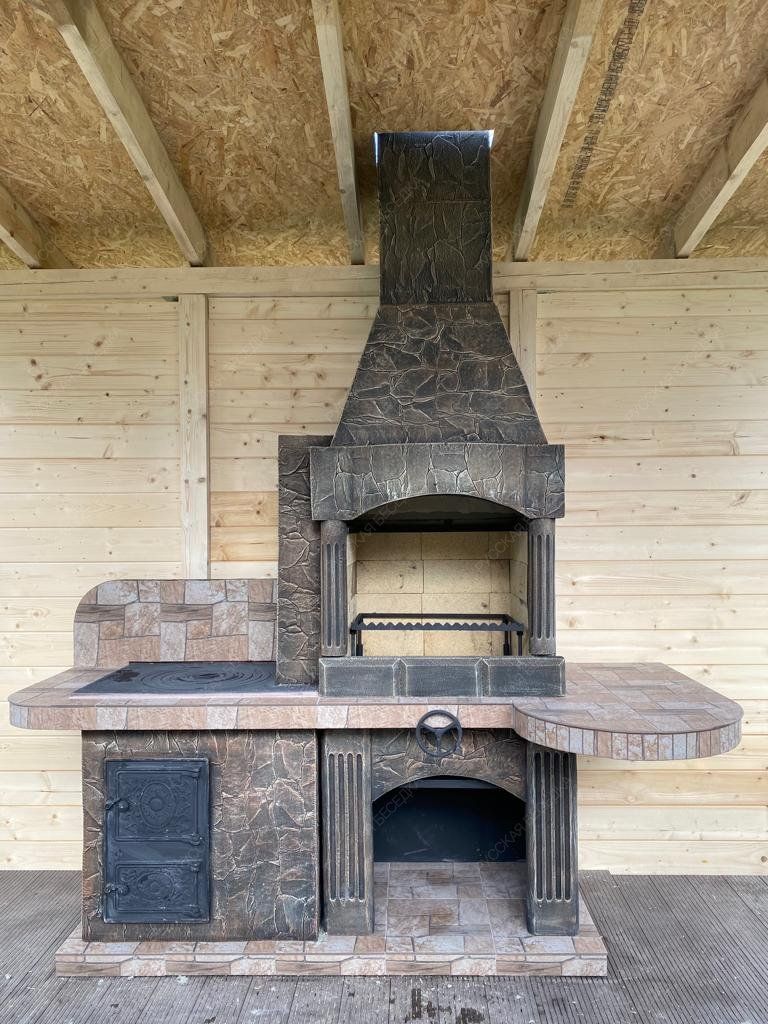 Барбекю-комплекс сделан из армированного огнеупорного бетона с добавлением керамзита.