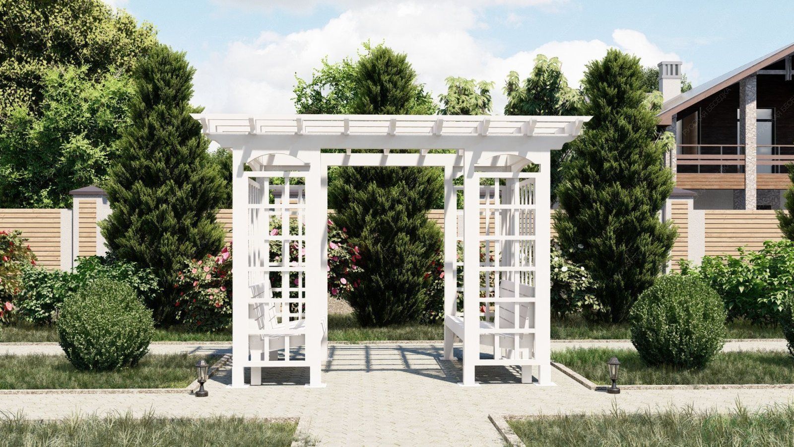 Перголы из дерева сочетают в себе природную красоту и современные дизайнерские решения, создают идеальное место для отдыха и различных видов досуга на открытом воздухе. Перголы могут стоять отдельно или быть частью композиции с другими элементами сада.