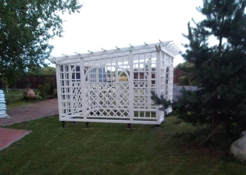 Пергола с навесом обеспечивает надежную защиту от солнечных лучей, создавая тенистое пространство для отдыха. Она станет идеальным местом для встреч с друзьями, чтения книг или приема пищи на свежем воздухе.