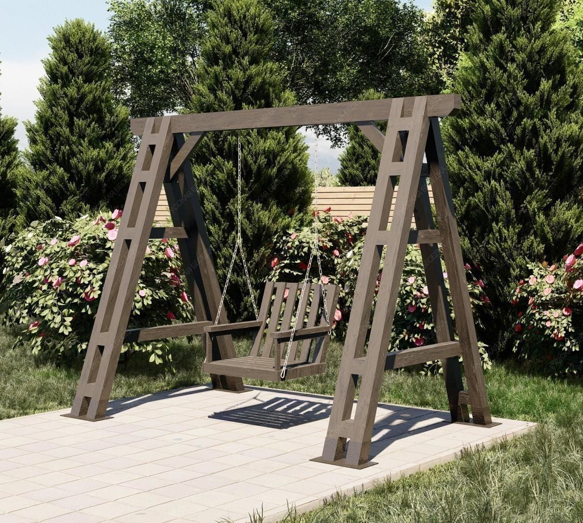 Эти качели идеально вписываются в ландшафт вашего участка, добавляя ему стильный и современный акцент. Они станут любимым местом для всей семьи, где можно провести время в общении и отдыхе.