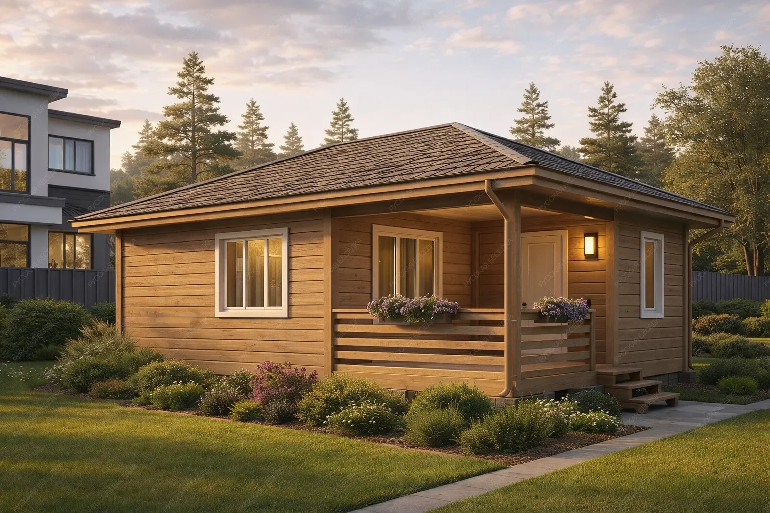 Садовые дома из хвойных пород древесины — это идеальное решение для обустройства загородного участка. Просторные и уютные, они отлично подходят для летнего проживания, выполняя функцию гостевого дома или компактной дачи, где можно с комфортом проводить тёплые месяцы вдали от городской суеты. В основе конструкции — массив сухой строганной доски камерной сушки и клееный брус, прошедшие тщательную обработку. Сорт древесины АВ по лицевой стороне обеспечивает чистую, эстетичную поверхность с благородной текстурой натурального дерева. Хвойные породы (ель и сосна) создают внутри особый микроклимат: воздух наполняется лёгким ароматом смол, а естественная способность древесины дышать поддерживает комфортный уровень влажности даже в жаркие дни. Такие постройки органично вписываются в любой ландшафт, не требуя массивного фундамента и сложного ухода. Внутреннее пространство может быть организовано по собственному усмотрению: от зоны отдыха до компактной спальни или столовой. Это полноценное жилое пространство, где каждая деталь продумана для того, чтобы пребывание на свежем воздухе было максимально комфортным. Капитальность конструкции, обеспеченная качественными материалами, гарантирует долгие годы эксплуатации. Садовый дом становится не просто постройкой, а любимым местом встреч с близкими и уединённого отдыха на лоне природы.