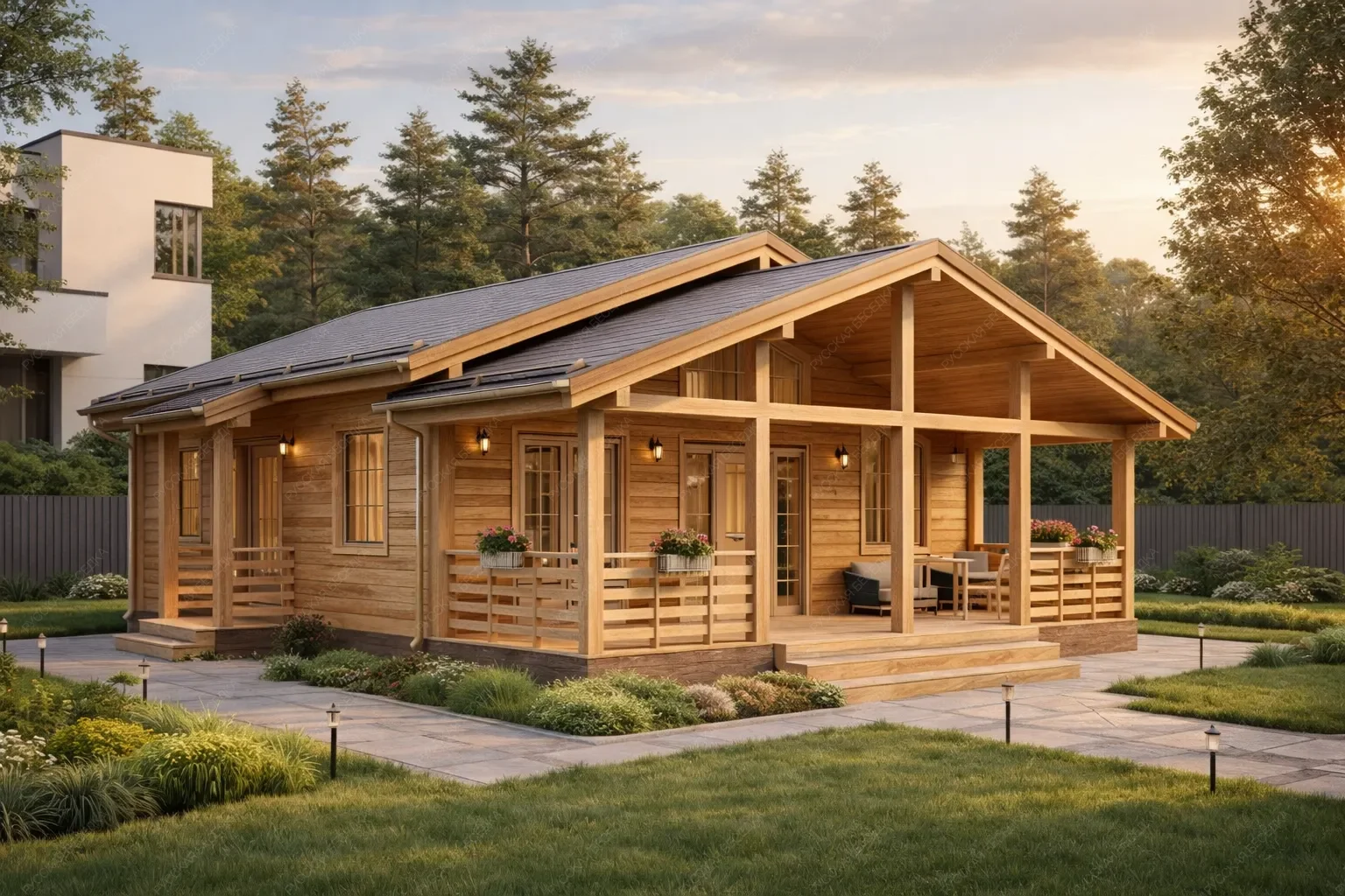 Садовые дома из хвойных пород древесины — это идеальное решение для обустройства загородного участка. Просторные и уютные, они отлично подходят для летнего проживания, выполняя функцию гостевого дома или компактной дачи, где можно с комфортом проводить тёплые месяцы вдали от городской суеты. В основе конструкции — массив сухой строганной доски камерной сушки и клееный брус, прошедшие тщательную обработку. Сорт древесины АВ по лицевой стороне обеспечивает чистую, эстетичную поверхность с благородной текстурой натурального дерева. Хвойные породы (ель и сосна) создают внутри особый микроклимат: воздух наполняется лёгким ароматом смол, а естественная способность древесины дышать поддерживает комфортный уровень влажности даже в жаркие дни. Такие постройки органично вписываются в любой ландшафт, не требуя массивного фундамента и сложного ухода. Внутреннее пространство может быть организовано по собственному усмотрению: от зоны отдыха до компактной спальни или столовой. Это полноценное жилое пространство, где каждая деталь продумана для того, чтобы пребывание на свежем воздухе было максимально комфортным. Капитальность конструкции, обеспеченная качественными материалами, гарантирует долгие годы эксплуатации. Садовый дом становится не просто постройкой, а любимым местом встреч с близкими и уединённого отдыха на лоне природы.