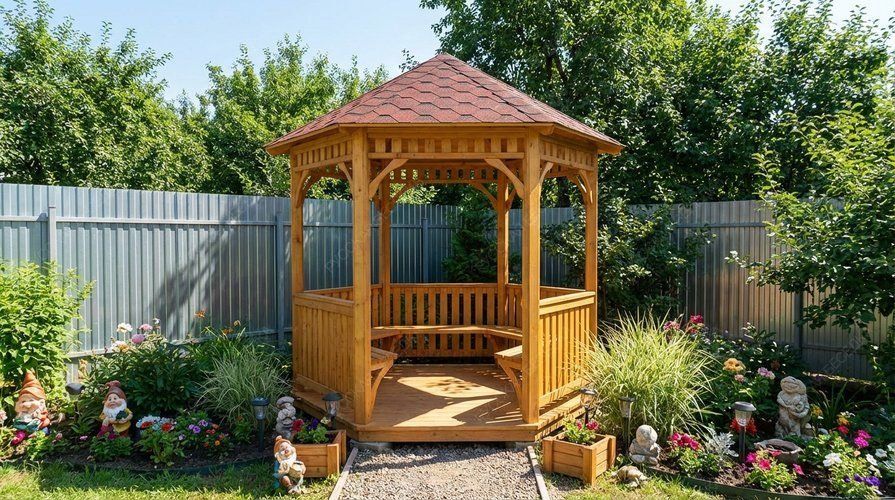 Современный ландшафтный дизайн и беседки - центральные элементы загородного участка. Беседка должна размещаться в таком месте участка, где вам будет комфортно находиться, а также она должна отвечать своему назначению и притягивать взгляды. Беседка является уникальным строением, с ее помощью можно отдохнуть за чашечкой кофе, укрыться от знойного солнца или провести шумный праздник в кругу семьи и друзей.
