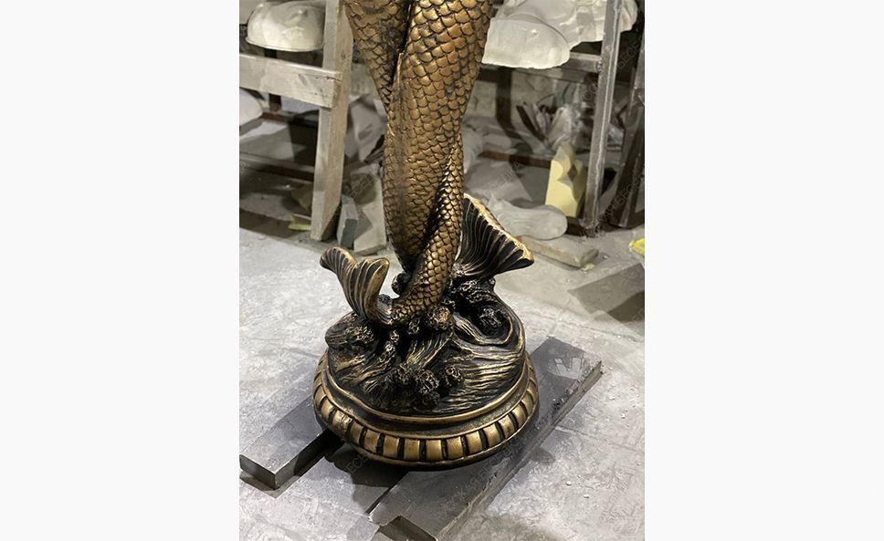 Универсальная садово-парковая композиция «Русалки» отличается чувственной пластичностью форм, филигранной детализацией фрагментов и обильной декорацией опорного основания. Русалки для сада могут использоваться как элемент ландшафтного декорирования, при необходимости украсить фасад здания, также выступить в качестве полноценного фонтана или в роли одного из его элементов.                                                                                                                               Парная статуя русалок с массивным декоративным основанием и функциональным навершием в виде чаши-ракушки, которую можно использовать в качестве вазона или фонтанчика. Наши скульптуры зарекомендовали себя как универсальный ландшафтный и архитектурный декор. Также их можно использовать как элементы больших уличных фонтанов. Бетонная скульптура в отделке под классическую бронзу хорошо приспособлена к условиям российского климата и сохраняет свой первоначальный внешний вид на протяжении многих сезонов. Создавая эту скульптуры, мы выбрали позу, которая во всех нюансах раскрывает красоту и грацию женского тела. Статуи отличаются безупречными пропорциями, реалистичной пластикой и тонкой проработкой деталей. Массивное основание имеет богатый декор и служит надежной опорой, которая обеспечивает устойчивость скульптуры на любой поверхности. Наших русалок успешно используют в качестве садовых статуй, архитектурных элементов частных домовладений и общественных заведений. В руках русалки удерживают чашу-ракушку. Она придает статуе визуальный баланс, уравновешивая массивное основание, и расширяет варианты ее использования. Благодаря чаше скульптуру можно задействовать как небольшой вазон, садовый фонтанчик или элемент большого фонтана в Москве. Для этих целей на этапе отливки мы закладываем в изделие силиконовый шланг. Установив на его конце насадку-распылитель и подключив к системе подачи воды, скульптуру преобразит эффектная струя в виде купола или гейзера. Скульптуры созданы из высокопрочного полимербетона с добавлением присадок, которые улучшают эксплуатационные характеристики материала. Отливка изделий произведена на вибростоле. Отработанная временем технология формовки позволяет добиться равномерной усадки смеси и достичь однородной структуры без полостей и других усадочных дефектов, присущих кустарному литью. Для придания дополнительной прочности скульптуры армируют. Декоративная отделка под классическую бронзу выполнена проверенными фасадными красками, не боящимися влаги, выгорания, растрескивания на морозе. Многоэтапная технология отделки предусматривает шлифовку, грунтование изделия, нанесение защитного покрытия для бетона. Краска наносится в несколько слоев с проработкой светотеневых эффектов, которые делают имитацию бронзы более реалистичной.