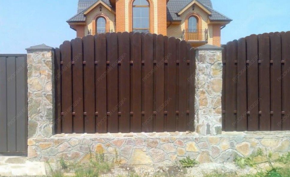 Профильная труба 40х20х2 мм, окрашенная в 2 слоя Обработка: Tikkurila METALLISTA PRIMER (грунт), краска Tikkurila Metallista в цвет заборной доски. Или деревянный каркас из строганного бруска 50х50
