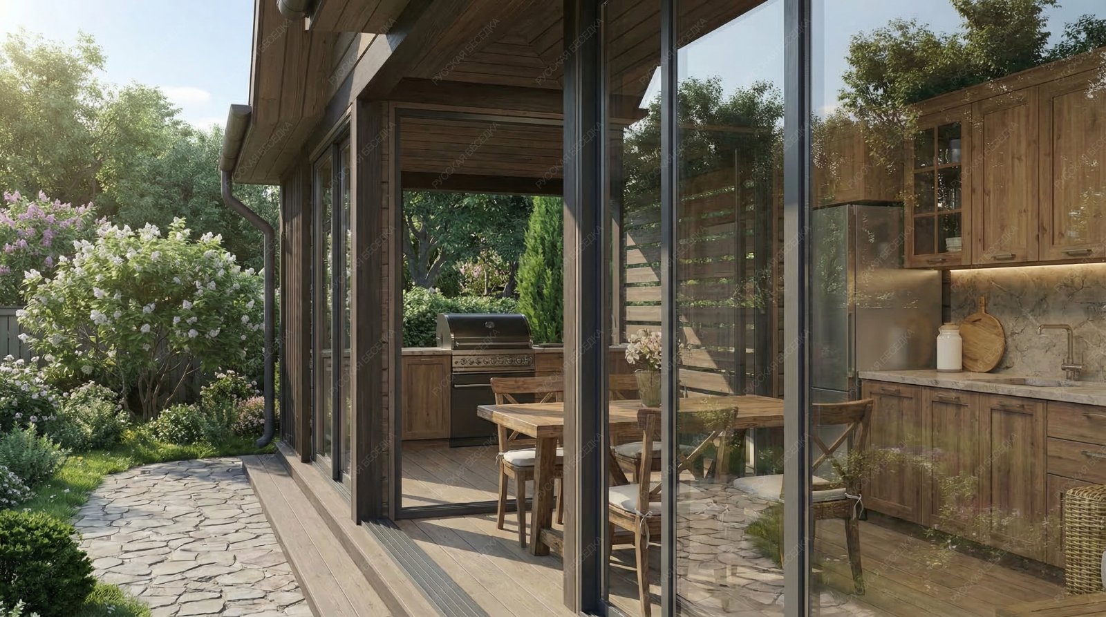 Беседка выполненная из лучших пород древесины, прослужит долгие годы и не потребует особого ухода и обслуживания. Специальные лакокрасочные материалы которые мы используем, предотвратят старение, гниение и заражение грибком конструкции кухни. Используемая огнебиозащита образует полупрозрачное полуматовое покрытие, стойкое к влаге, УФ-излучению, перепадам температуры и другим атмосферным воздействиям.
